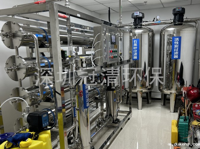 原水预处理:通过多介质过滤器除悬浮物、泥沙等;活性炭过滤器吸附有机物、余氯;软化器降低水的硬度。